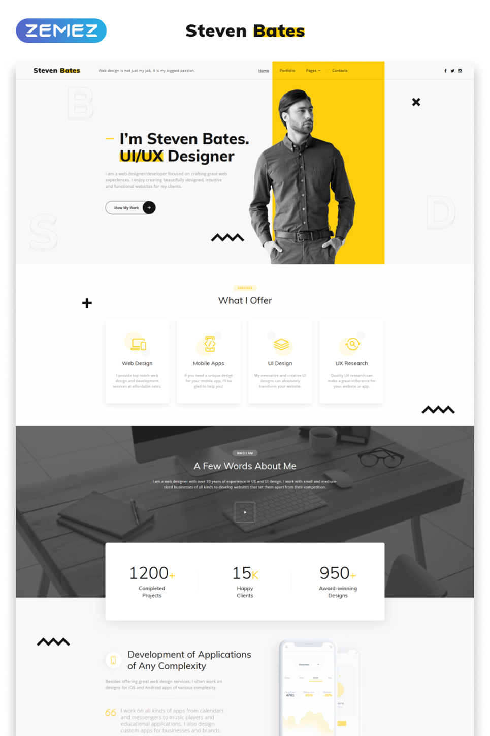 HTML5 мультишаблон - Steven Bates - Personal Page Multipage Modern HTML Website Template, хорошо подходит для сайтов Веб-дизайн.