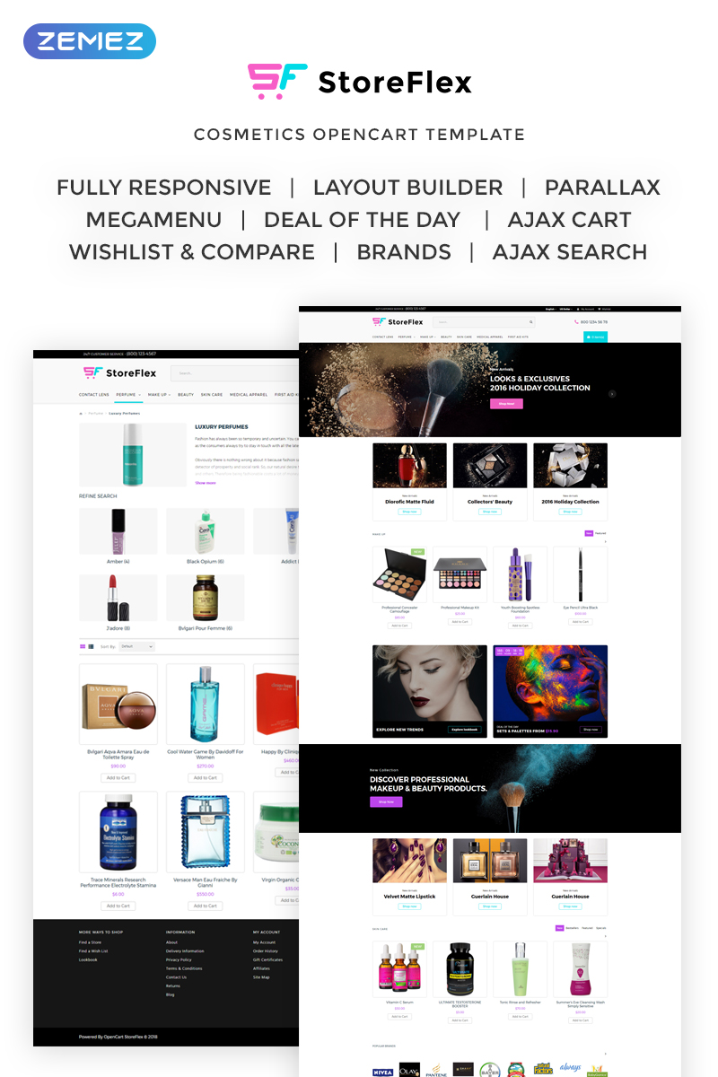 OpenCart интернет-магазин - StoreFlex - Cosmetics & Makeup OpenCart Template, подходит для сайтов на тему Магазин косметики.