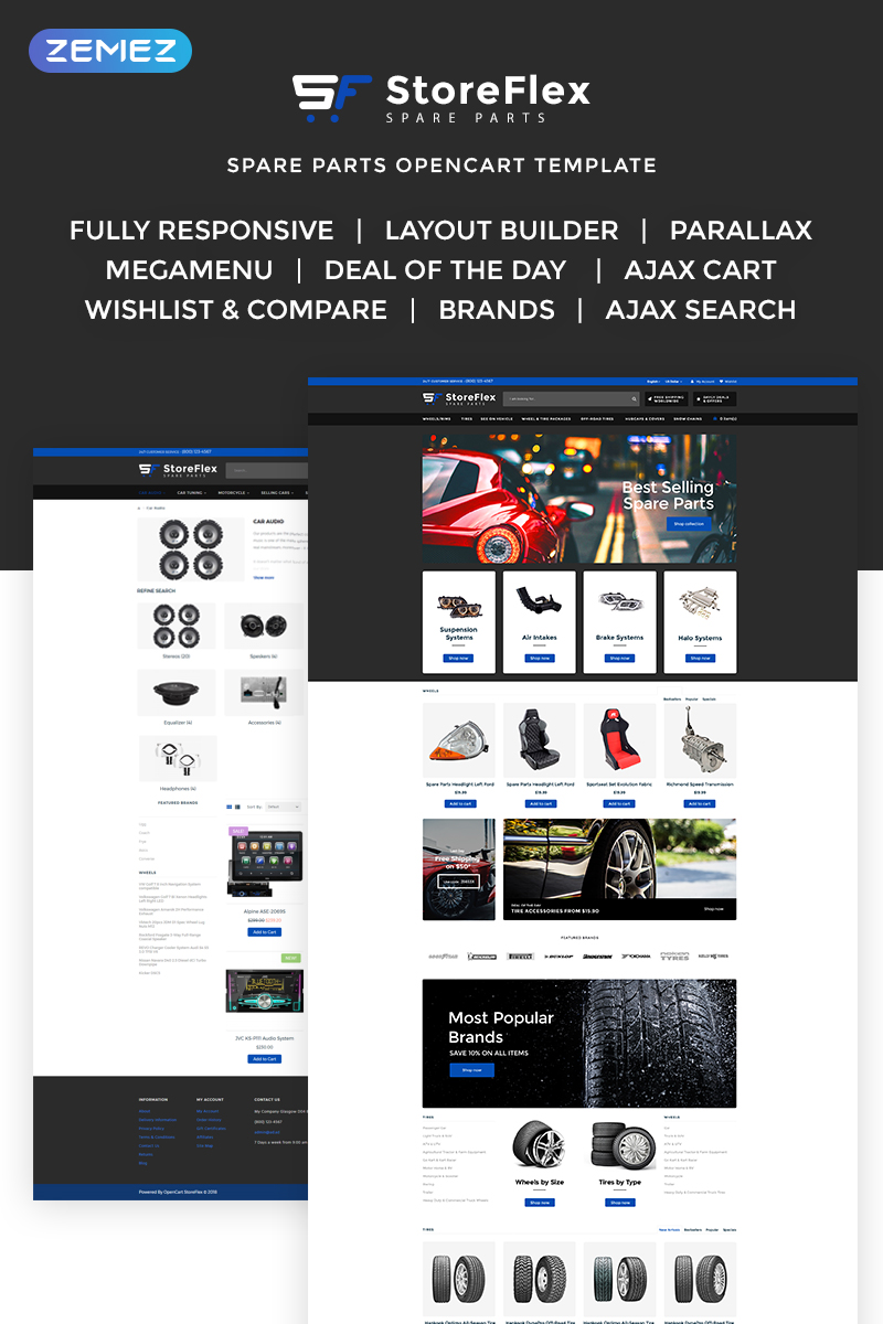 StoreFlex - подходит для сайтов на тему Автозапчасти. OpenCart шаблон для сайта интернет-магазина - Fancy Car Parts Online Shop OpenCart Template.