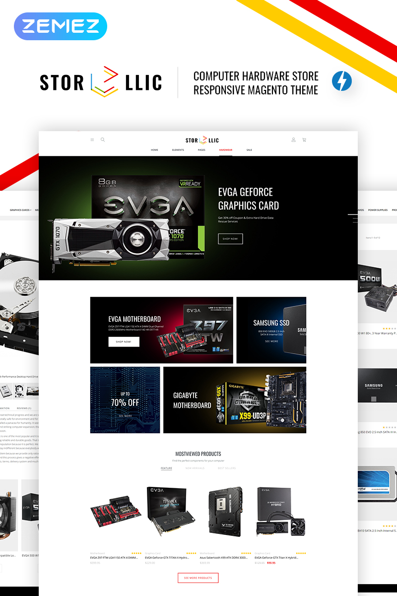 StorLlic - специально для сайтов в категории Компьютерный магазин. Magento шикарный шаблон - Computer Hardware Magento Theme.