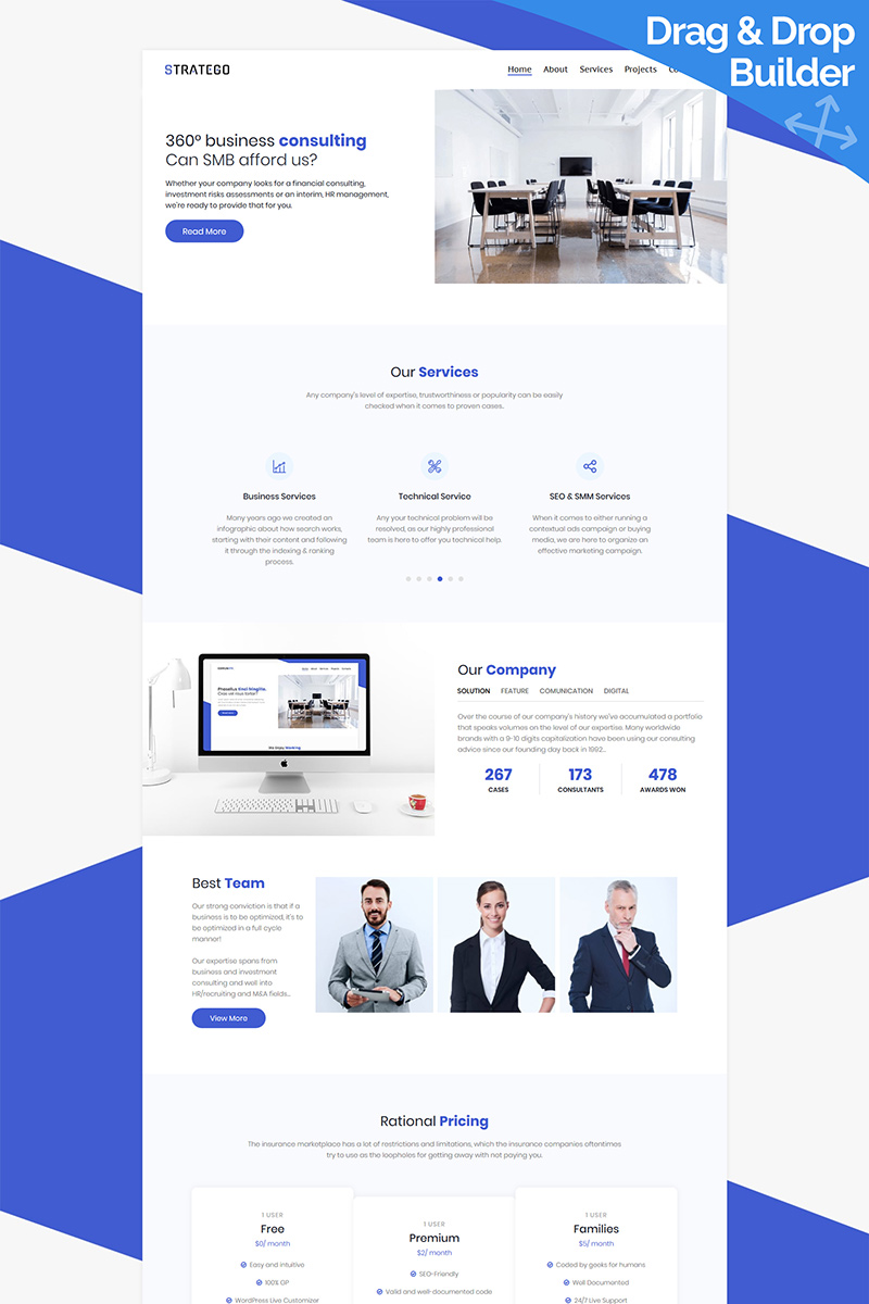 Moto CMS 3 адаптивный шаблон - Stratego - Business Moto CMS 3 Template, специально для сайтов Бизнес услуги.