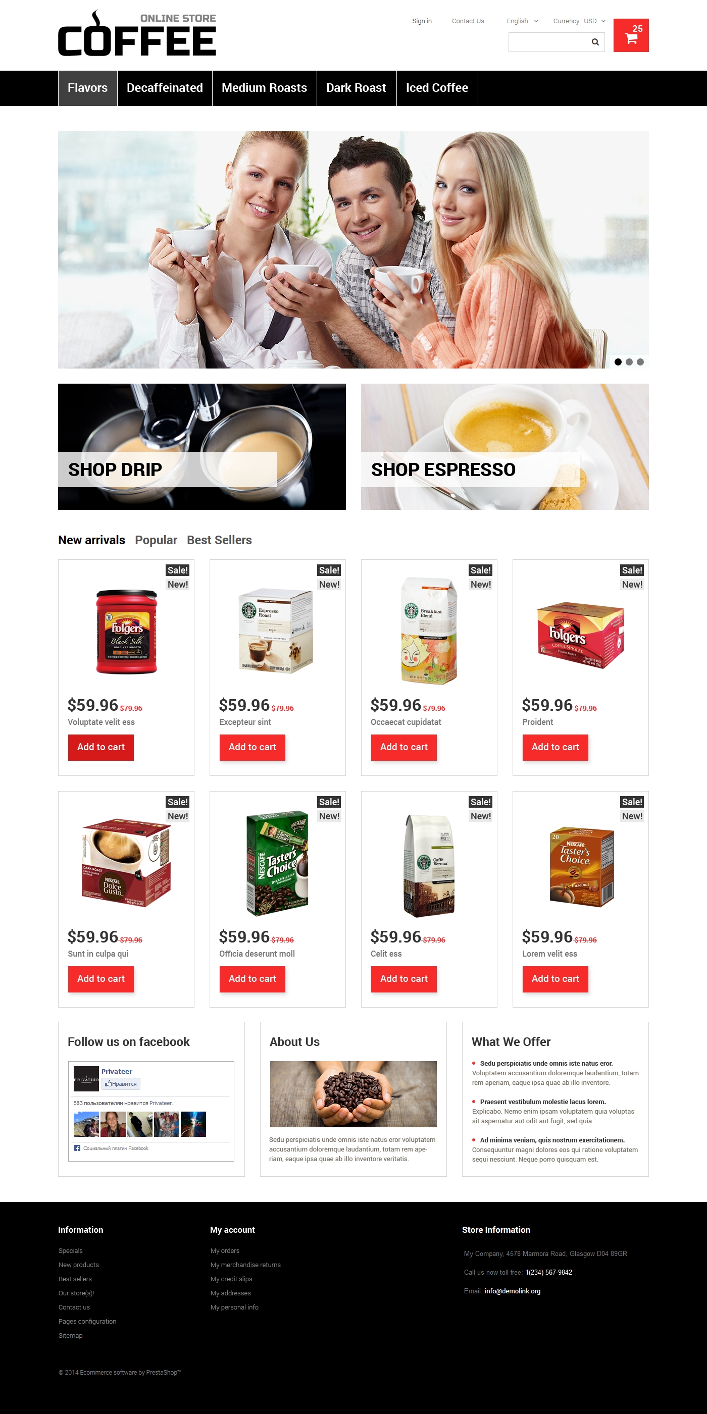 Крепкий кофе prestashop тема - Coffee Shop - PrestaShop интернет-магазин
