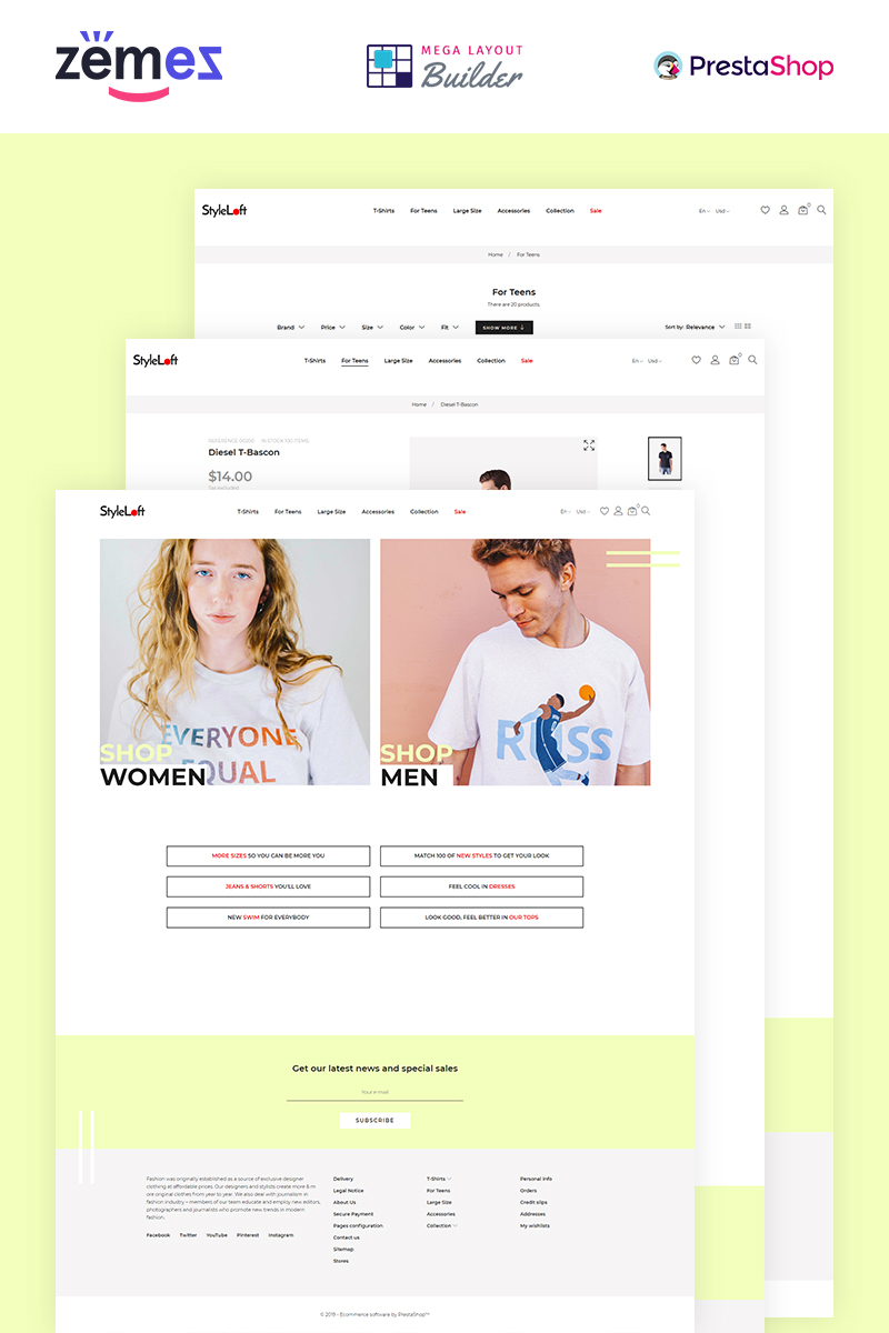 StyleLoft - идеально подойдет для сайтов Магазин футболок. PrestaShop шаблон для интернет-магазина - Shirts Store Ecommerce Bootstrap Clean PrestaShop Theme.