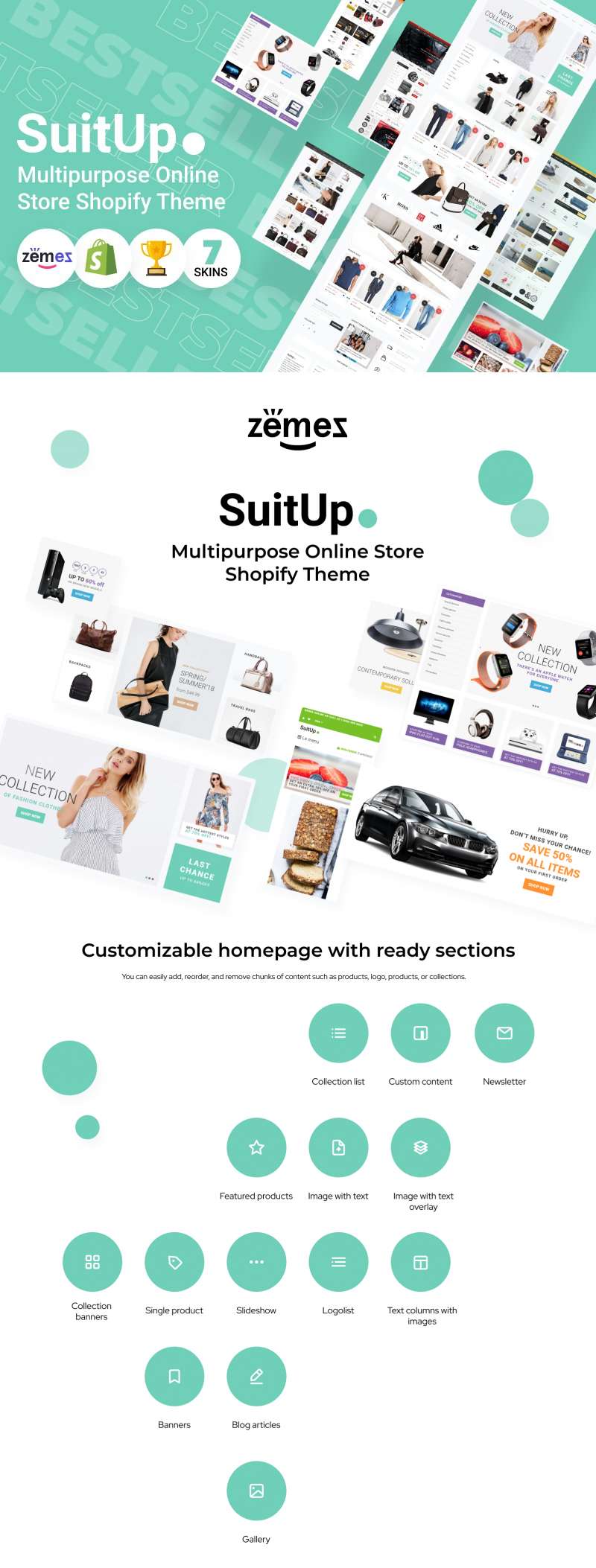 SuitUP - превосходно подойдет для сайтов на тему Магазин еды. Shopify интернет-магазин для сайта - Multipurpose Online Store Shopify Theme.