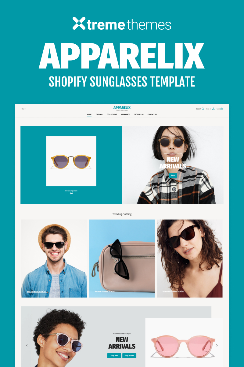 Shopify шаблон для сайта интернет-магазина - Eye Glasses - Sunglasses Store on Shopify Theme, превосходно подойдет для сайтов Солнцезащитные очки.