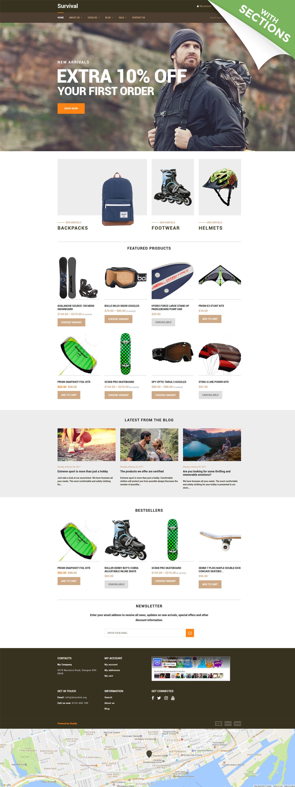 Shopify интернет-магазин - Survival - Travel Equipment Shopify Theme, подходит для сайтов в сфере Спортивный магазин.