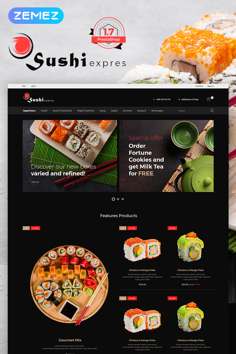 PrestaShop шаблон интернет-магазина - SushiExpress - Restaurant Store PrestaShop Theme, подойдет для сайтов на тему Суши-бар.