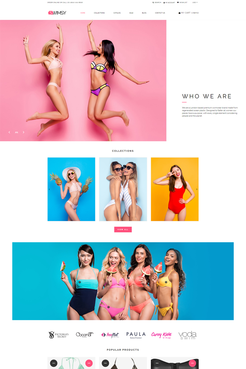 SWIMSY - превосходно подходит для сайтов в категории Плавание. Shopify шаблон для интернет-магазина - Swimwear Stylish Shopify Theme.