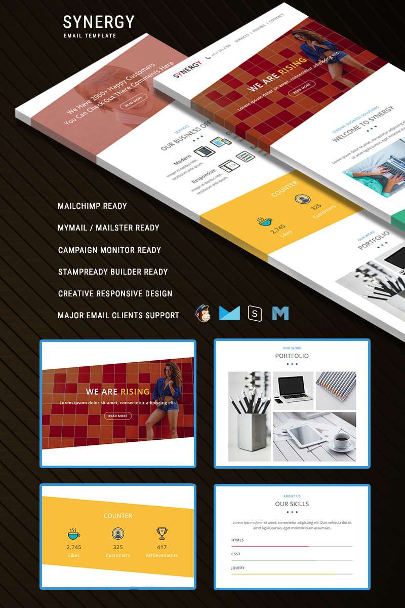 Email шаблон почтовой рассылки - SYNERGY - Responsive Email Newsletter Template, отлично подойдет для сайтов на тему Маркетинговое агентство.