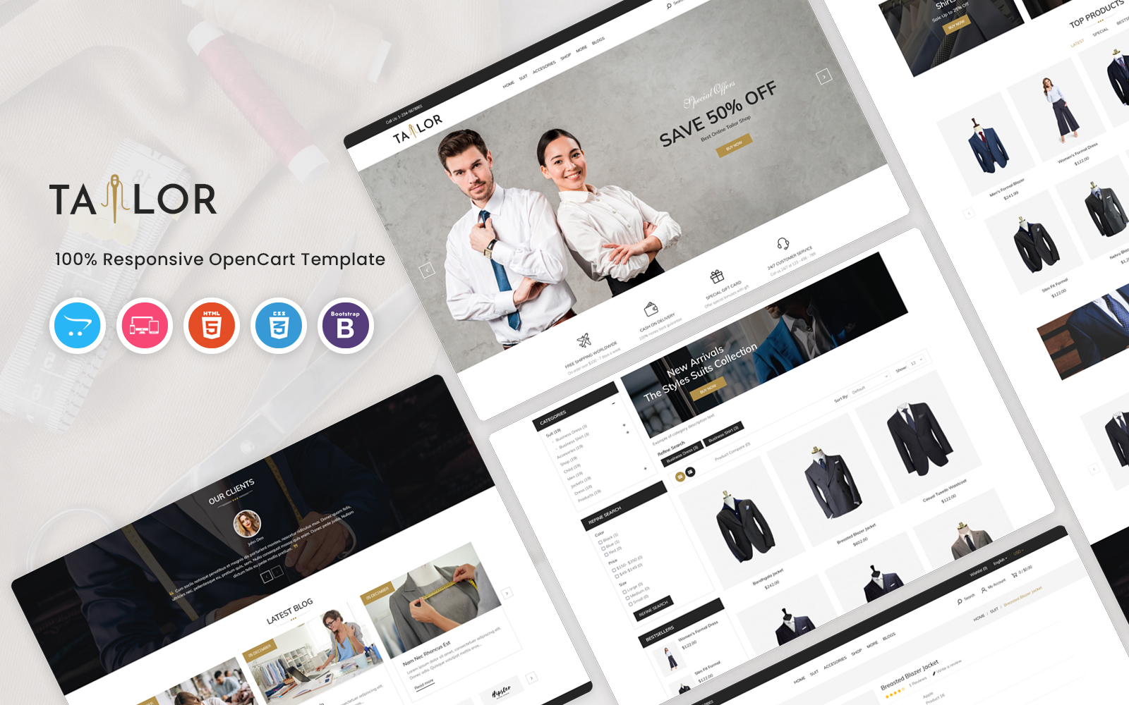 Apparel - подойдет для сайтов в сфере Магазин одежды. OpenCart шаблон для сайта интернет-магазина - Tailor OpenCart Template.