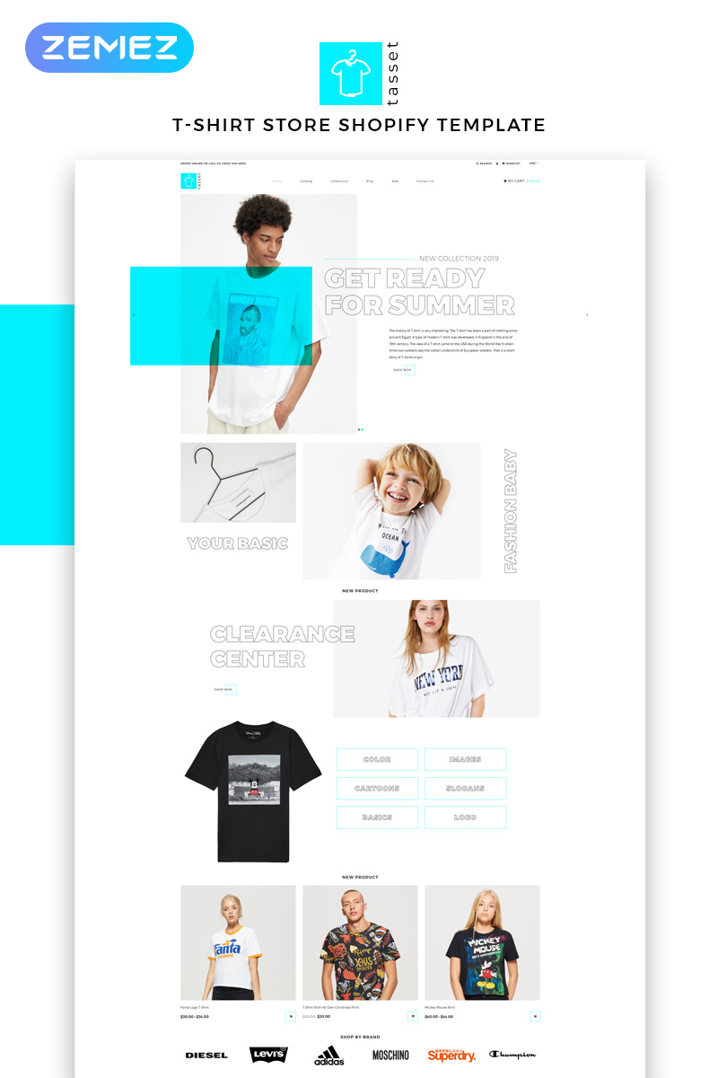 Shopify шаблон для интернет-магазина - Tasset - Fashion Store Multipage Modern Shopify Theme, отлично подойдет для сайтов на тему Магазин футболок.