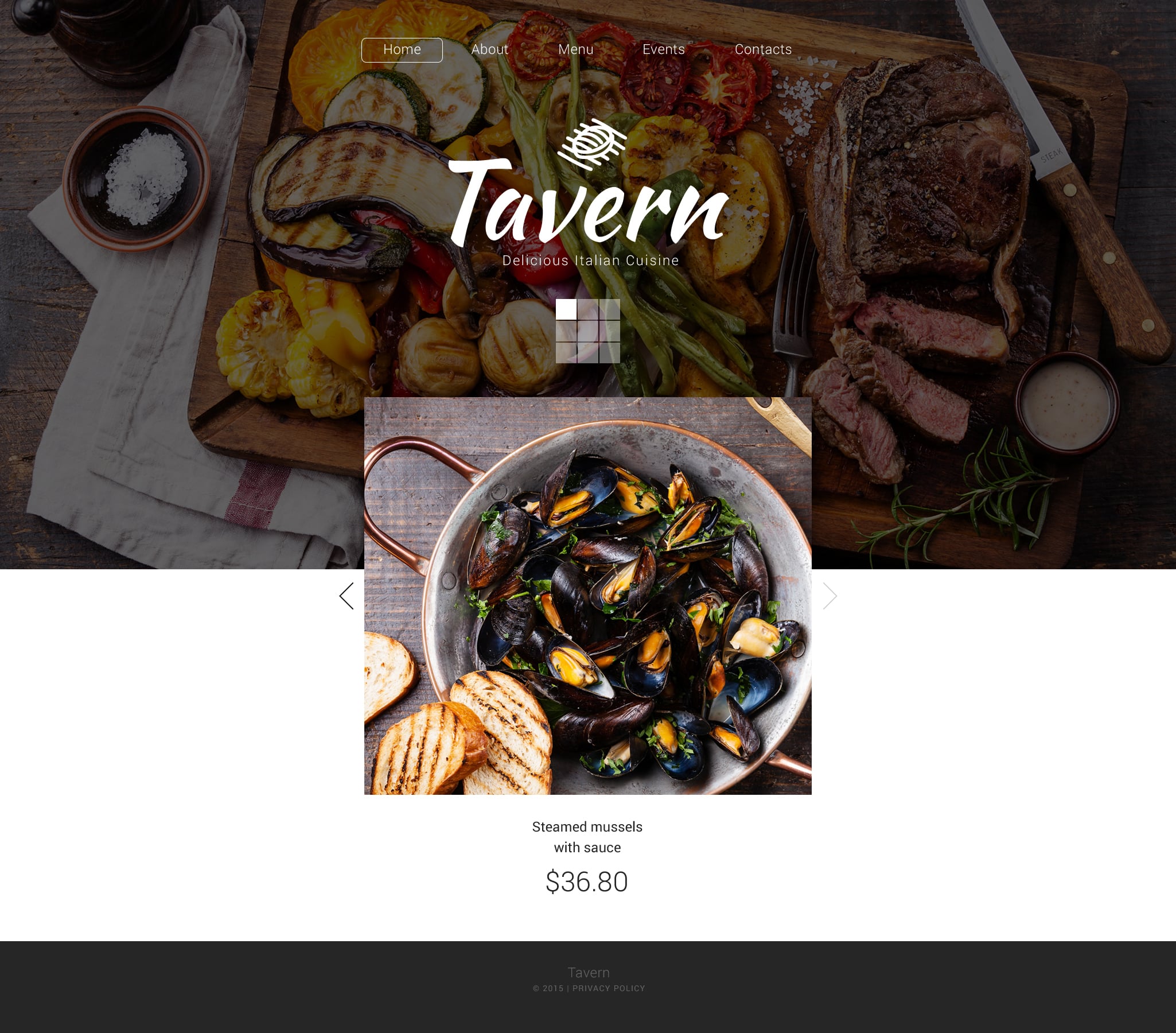 Italian Restaurant - отлично подойдет для сайтов в категории Итальянский ресторан. HTML5 новый шаблон - Tavern Website Template.