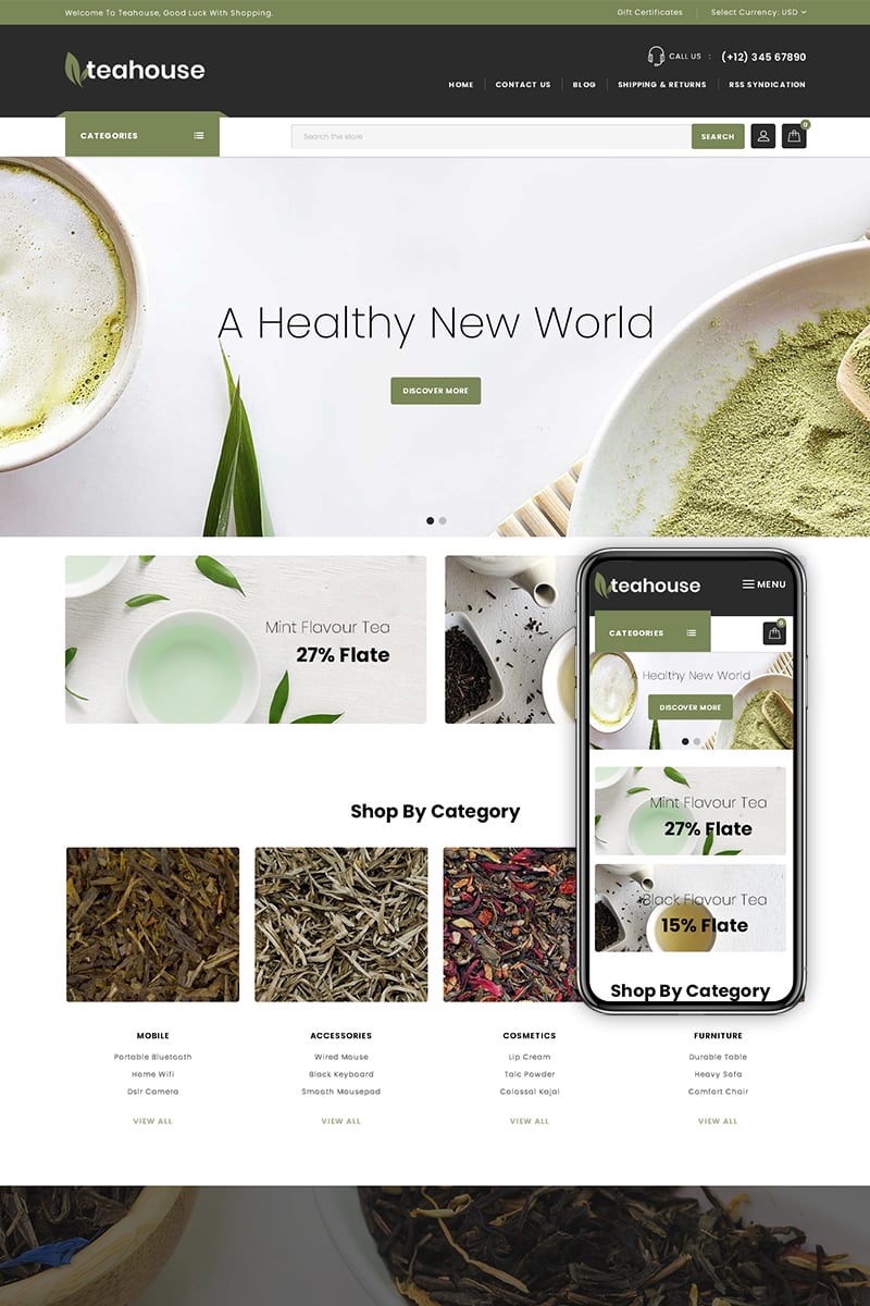 Teahouse - превосходно подойдет для сайтов на тему Электроника. BigCommerce шаблон для интернет-магазина - Multipurpose Store BigCommerce Theme.