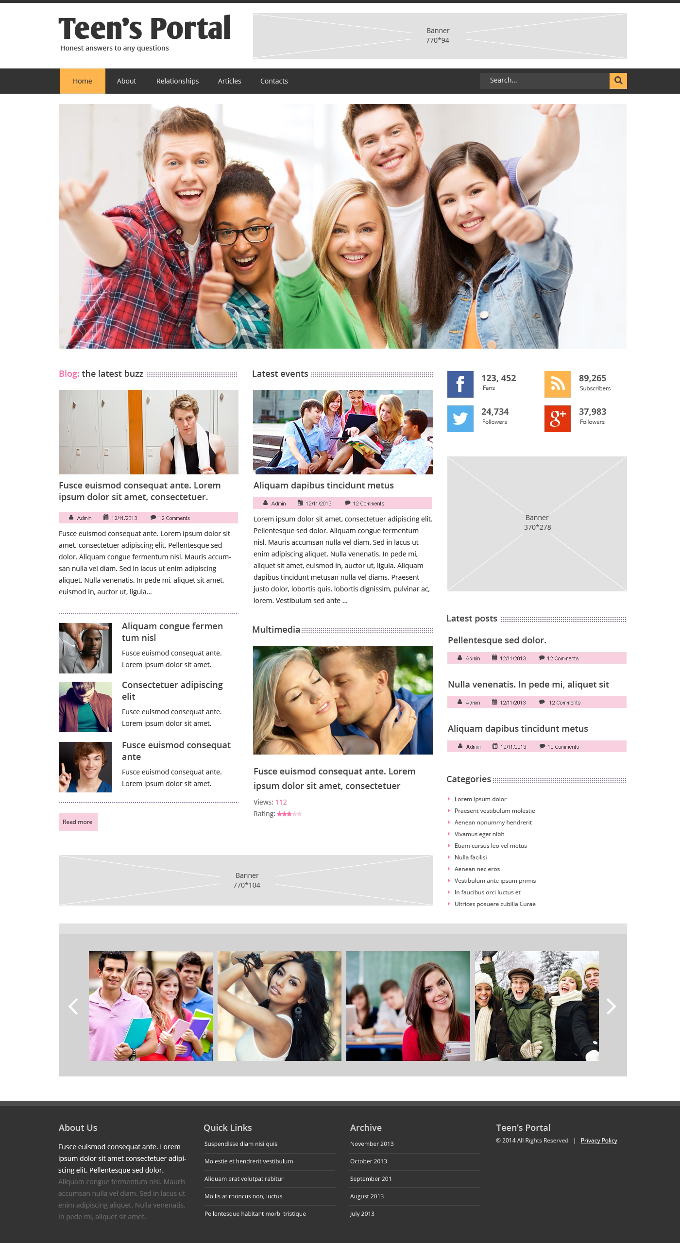 HTML5 эффектный шаблон - Teen Club - Teen Club Responsive Website Template, хорошо подходит для сайтов на тему Подростковый клуб.