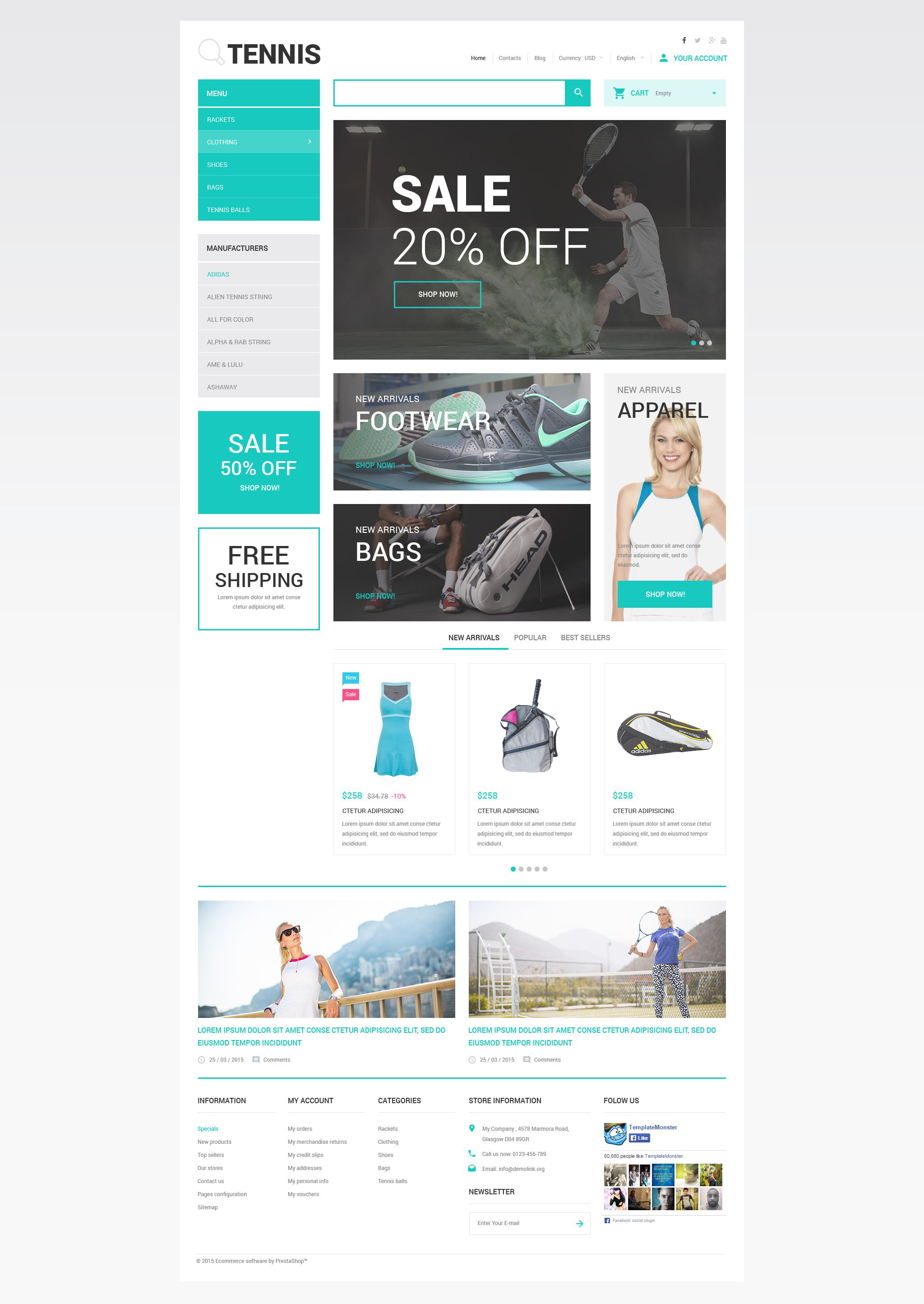 магазин теннисных аксессуаров prestashop theme