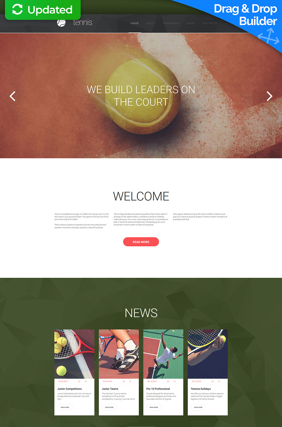 Tennis - хорошо подходит для сайтов в категории Теннис. Moto CMS 3 новый шаблон - Tennis Club Moto CMS 3 Template.
