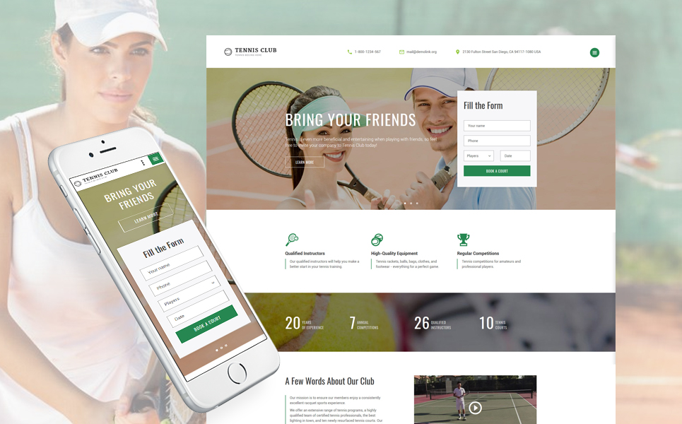 Tennis Club - превосходно подойдет для сайтов в категории Теннис. HTML5 новый шаблон - Sports & Events Multipage Website Template.