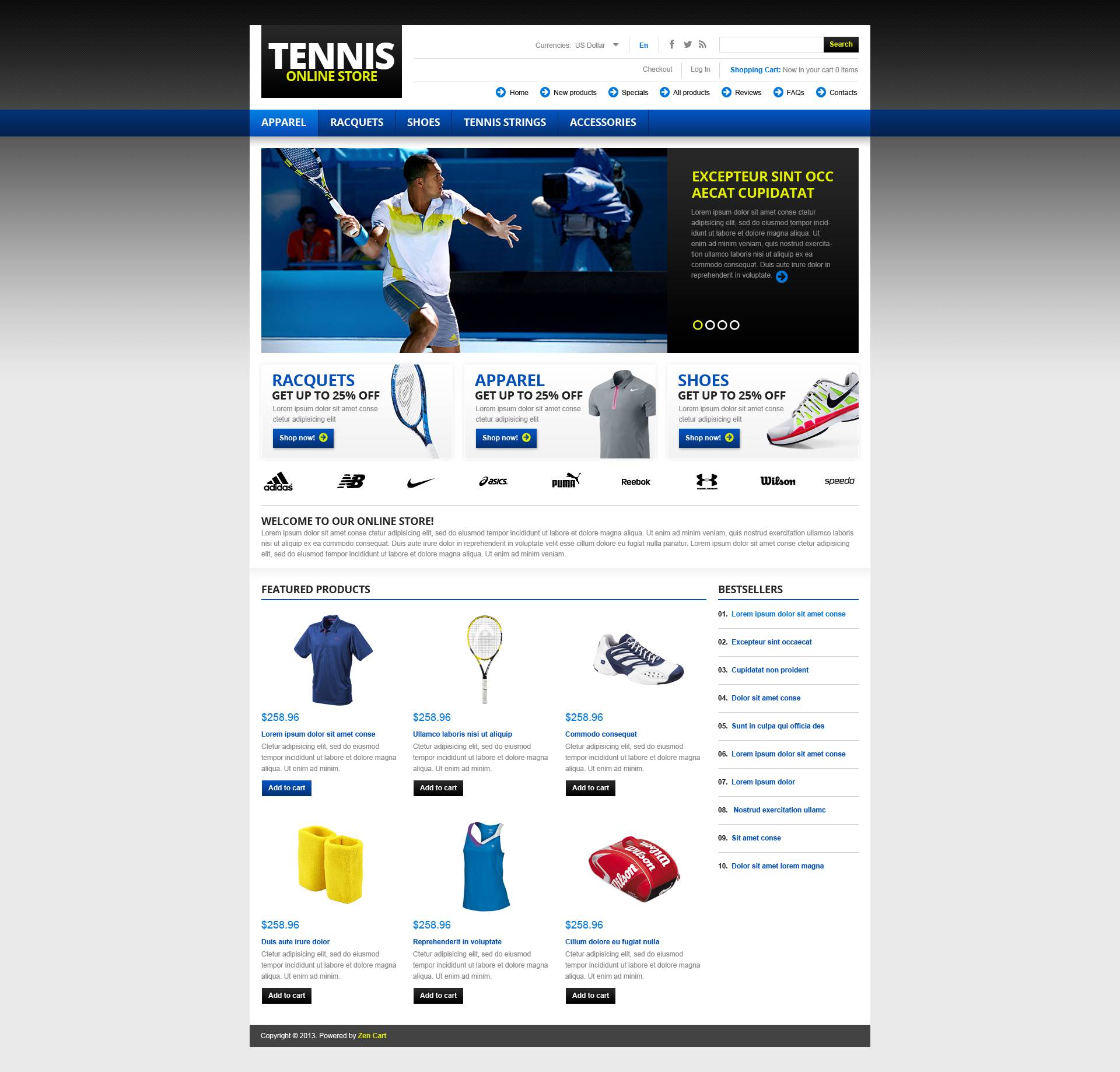 Теннисный магазин zencart шаблон - Tennis - ZenCart шаблон интернет-магазина