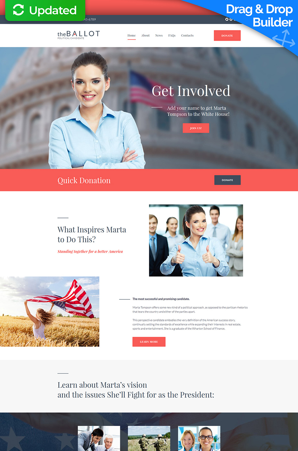 Moto CMS 3 мультишаблон - The Ballot - Political Candidate Moto CMS 3 Template, хорошо подходит для сайтов в области Политический кандидат.