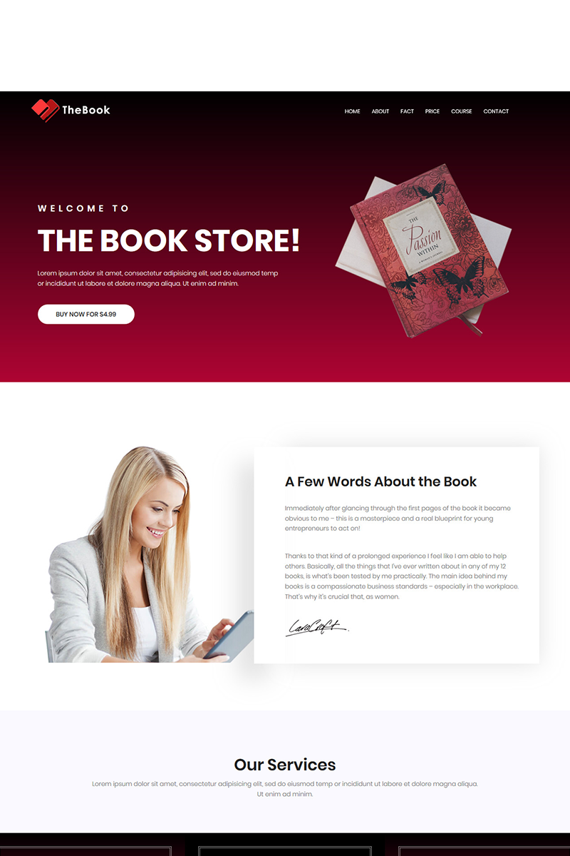Html5 book, writer & author template landing page template - TheBook - Лендинг шаблон одностраничника