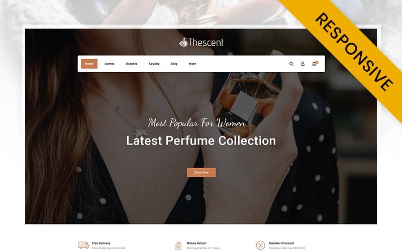 PrestaShop шаблон для интернет-магазина - TheScent - Perfume Store PrestaShop Theme, идеально подойдет для сайтов в сфере Магазин косметики.