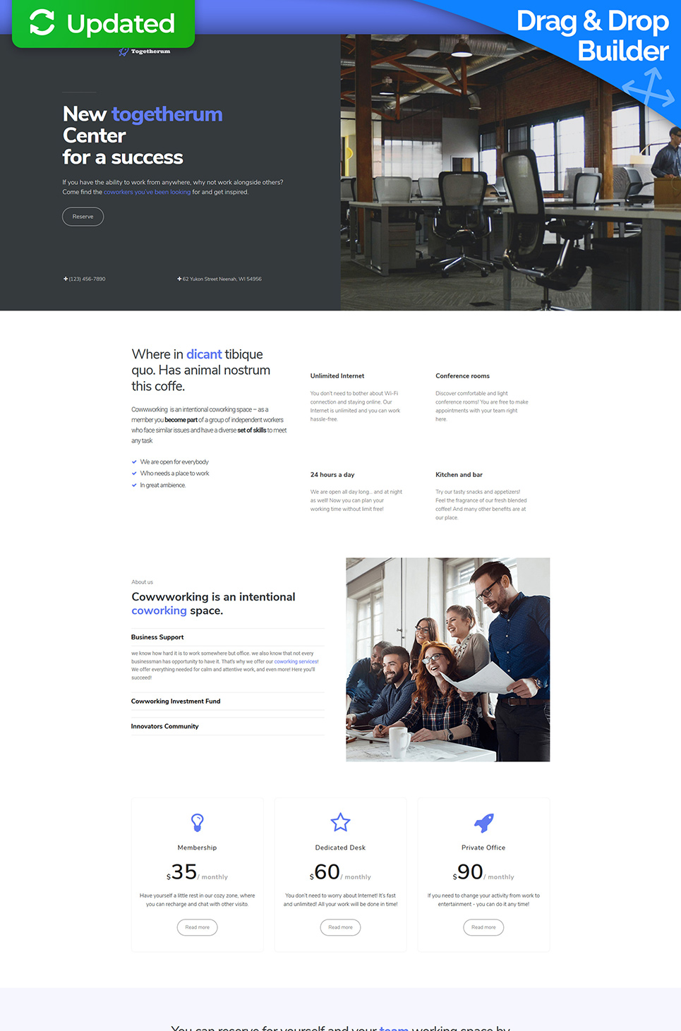 Togetherum - подходит для сайтов в сфере Бизнес услуги. Moto CMS 3 шаблон сайта - Coworking Centre Moto CMS 3 Template.
