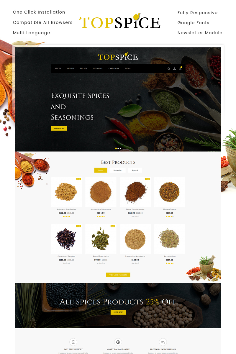 OpenCart интернет-магазин - Grocery Store - Top Spice Store OpenCart Template, хорошо подойдет для сайтов на тему Продуктовый магазин.
