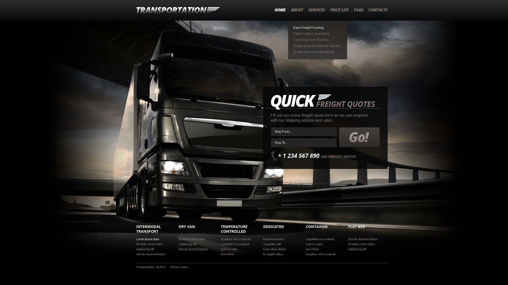 HTML5 эффектный шаблон - Transportation - Transportation Website Template, хорошо подойдет для сайтов в категории Перевозки.