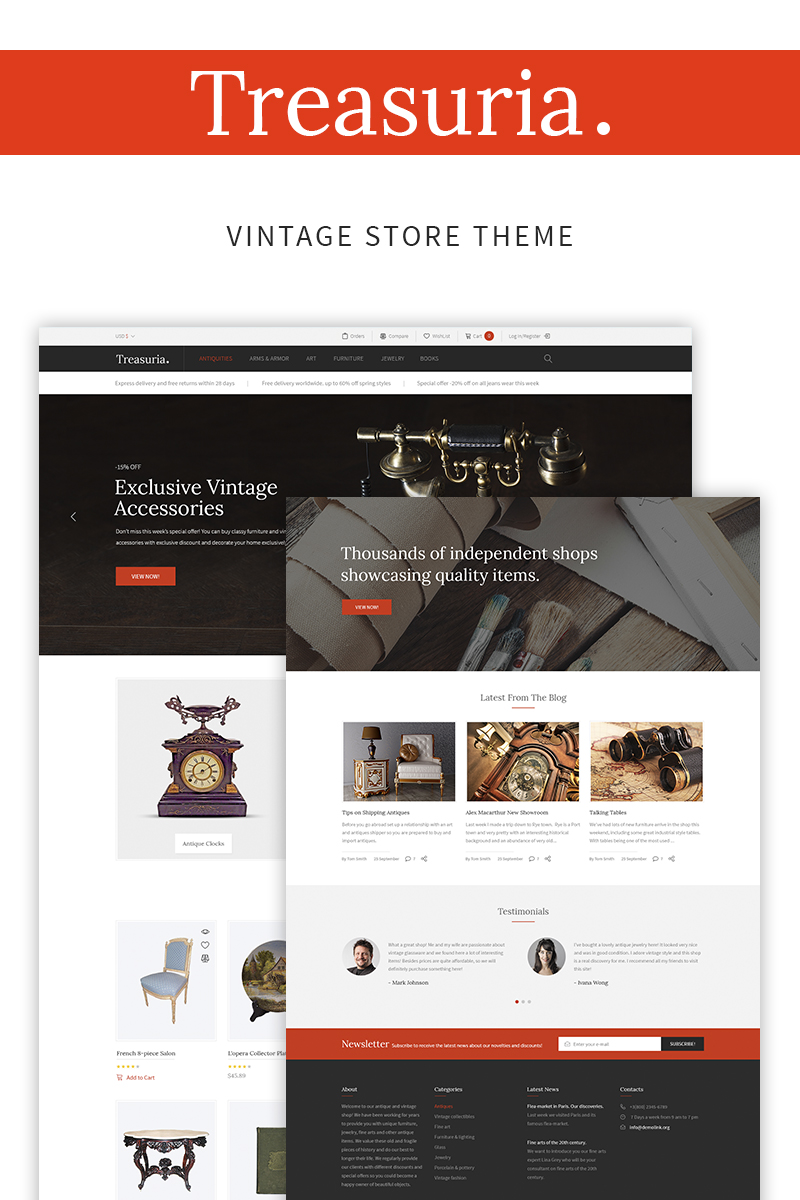 Treasuria - подойдет для сайтов в сфере Художественная галерея. WooCommerce шаблон для интернет-магазина на Wordpress - Antique & Vintage WooCommerce Theme.
