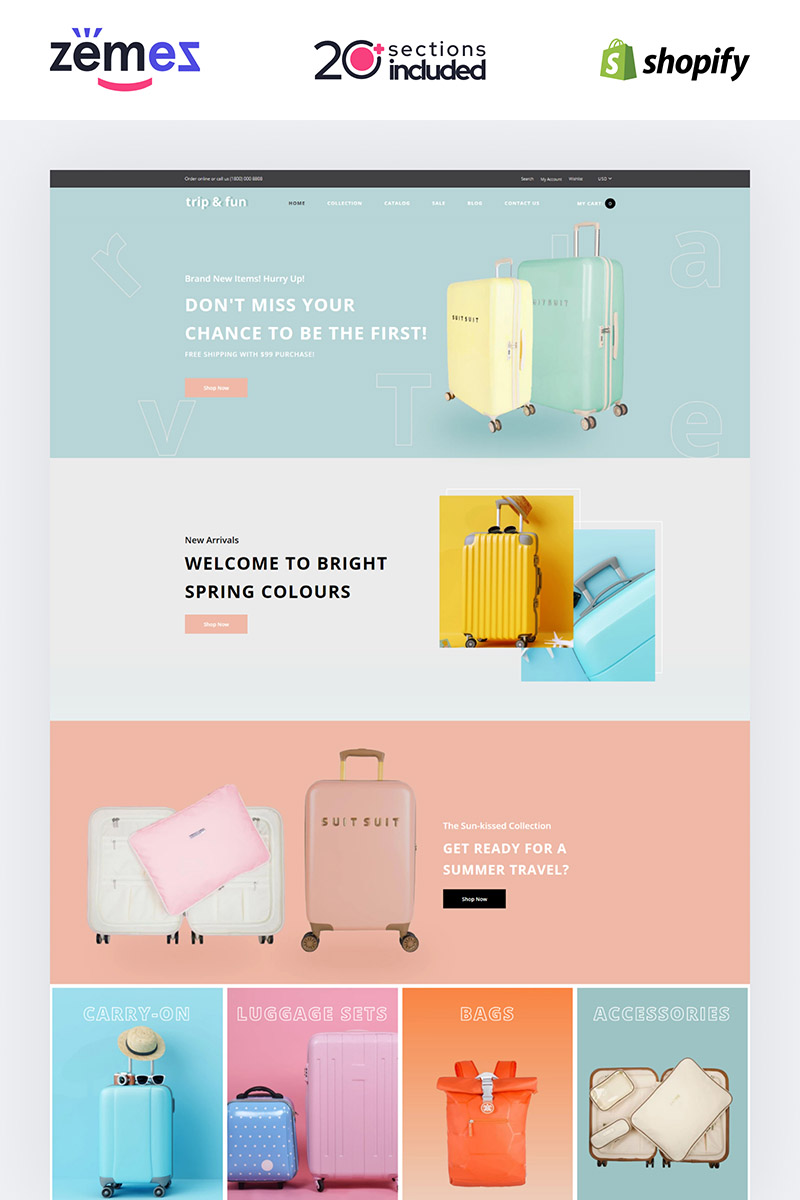Shopify шаблон интернет-магазина - Trip&Fun - Travel Agency Shopify Theme, подойдет для сайтов Путеводитель.