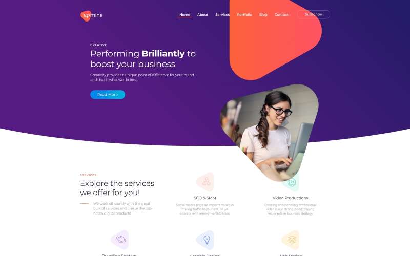 Upmine - отлично подойдет для сайтов в области Финансы. WordPress шаблон - Corporate Digital Agency WordPress Elementor Theme.