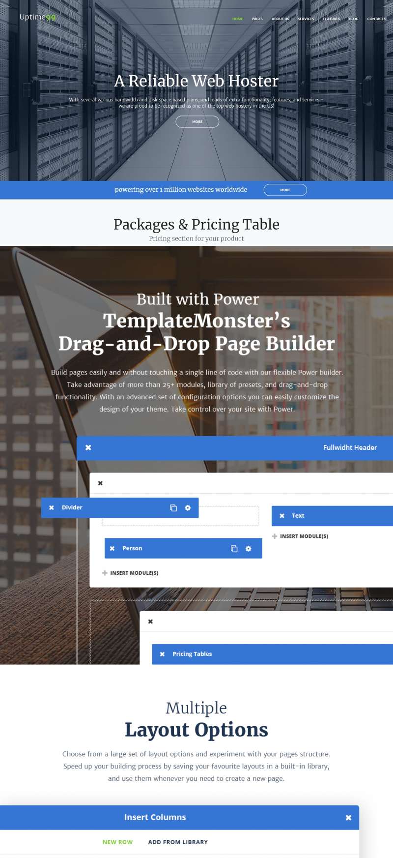 WordPress эффектный шаблон - Uptime99 - Web Hosting WordPress Theme, отлично подходит для сайтов в категории Хостинг.