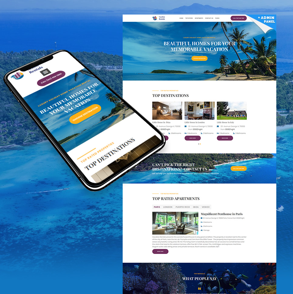 Real Estate - хорошо подойдет для сайтов в области Недвижимость. Лендинг шаблон посадочной страницы - Vacation Rental Landing Page Template.