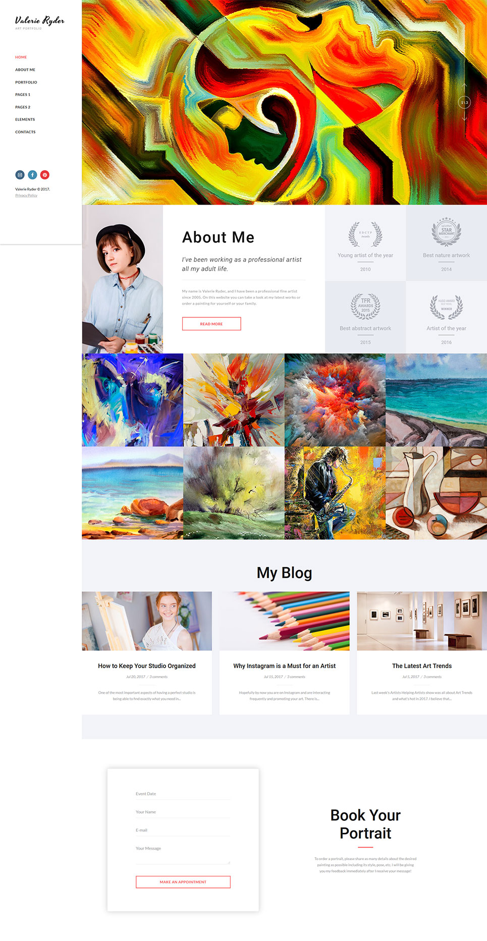 Valerie Ryler - подойдет для сайтов на тему Художественное портфолио. HTML5 минималистичный шаблон - Artist Portfolio Responsive HTML5 Website Template.