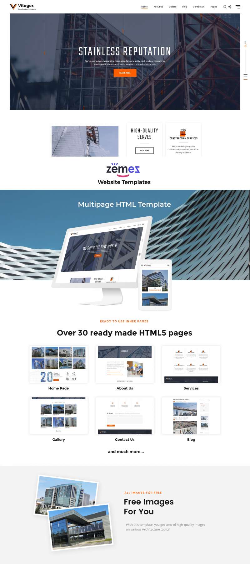 HTML5 шаблон для сайта - Vitagex - Construction Company Multipage Modern HTML Website Template, превосходно подходит для сайтов Строительные компании.