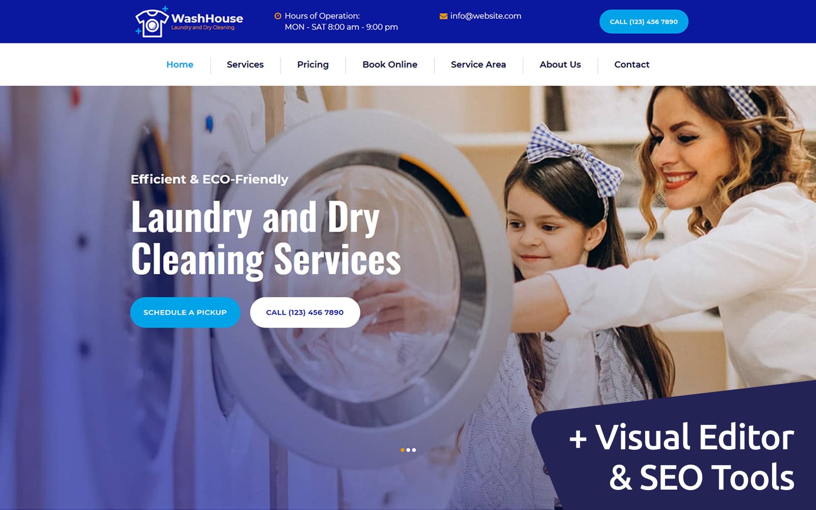 Moto CMS 3 приятный шаблон - WashHouse - Laundry and Dry Cleaning Moto CMS 3 Template, превосходно подойдет для сайтов на тему Прачечная.