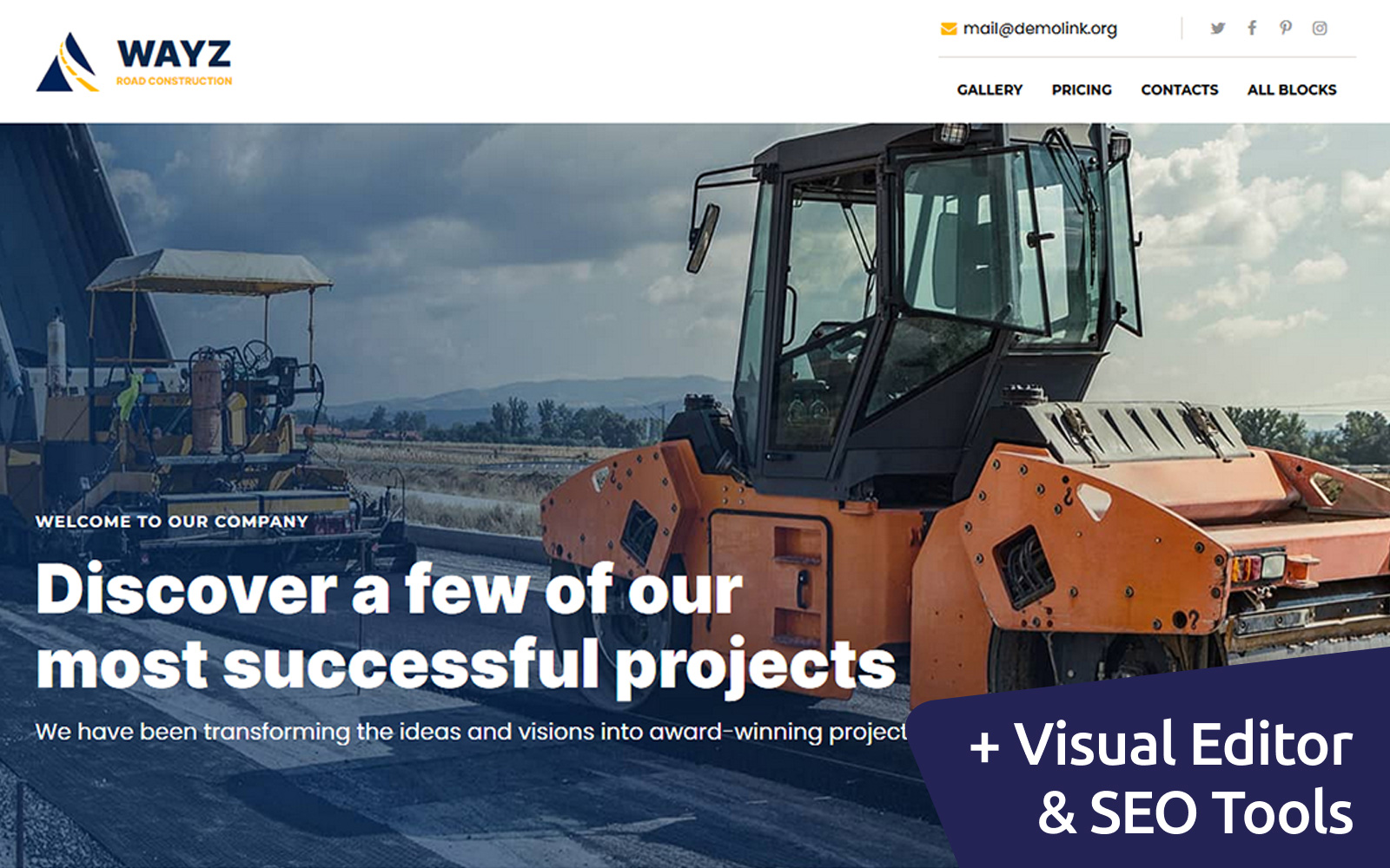 Wayz - специально для сайтов в области Гражданское строительство. Лендинг шаблон одностраничника - Road Constructions MotoCMS Landing Page Template.