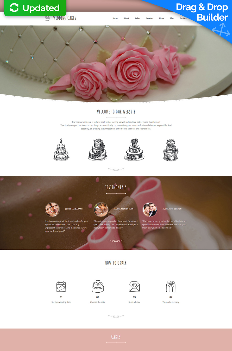 Wedding Cake - специально для сайтов Свадебные торты. Moto CMS 3 адаптивный шаблон - Wedding Cakes Moto CMS 3 Template.