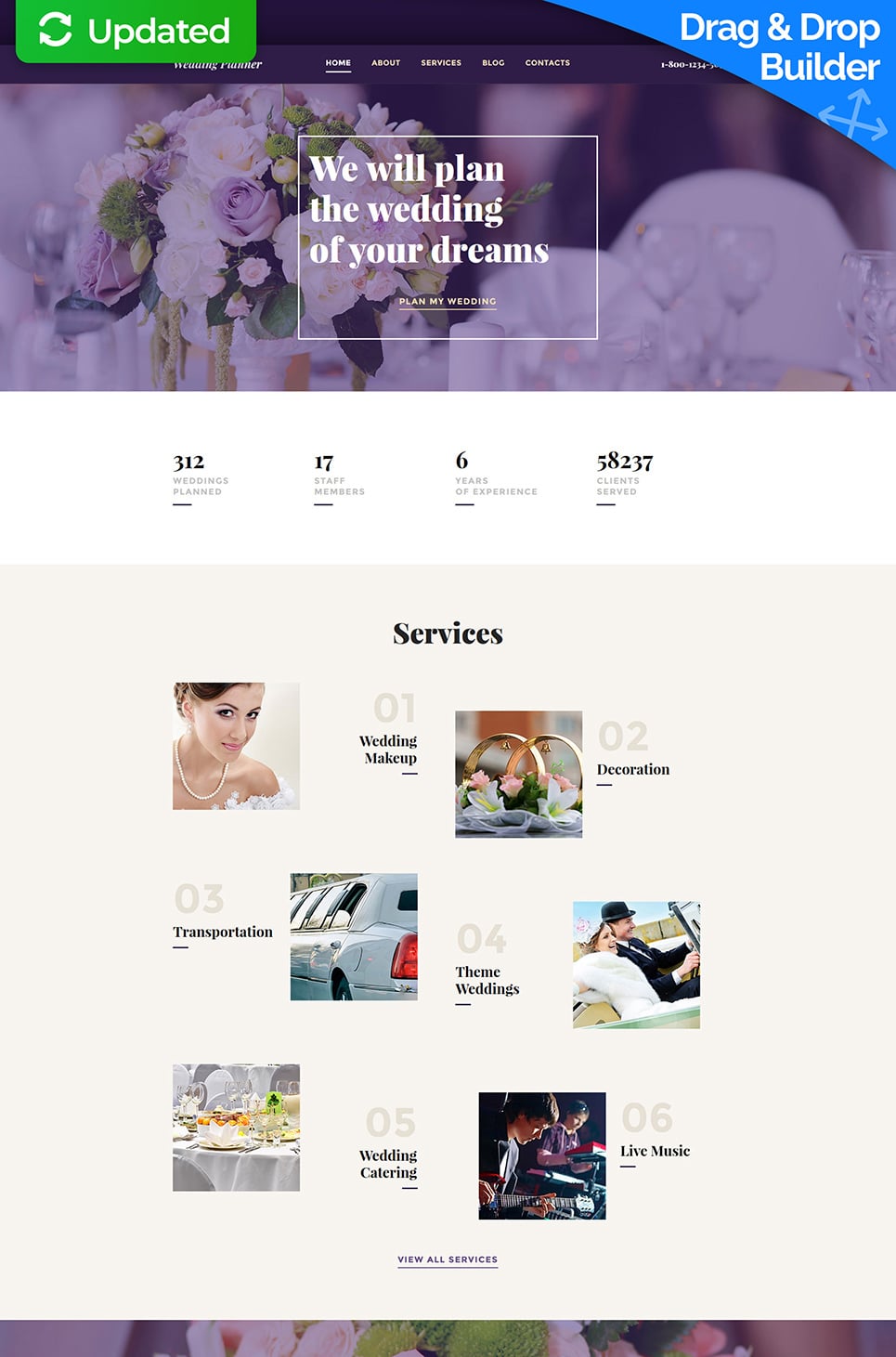 Moto CMS 3 отличный шаблон - Wedding Planner - Wedding Planner MotoCMS Website Template, подходит для сайтов Организация свадьбы.