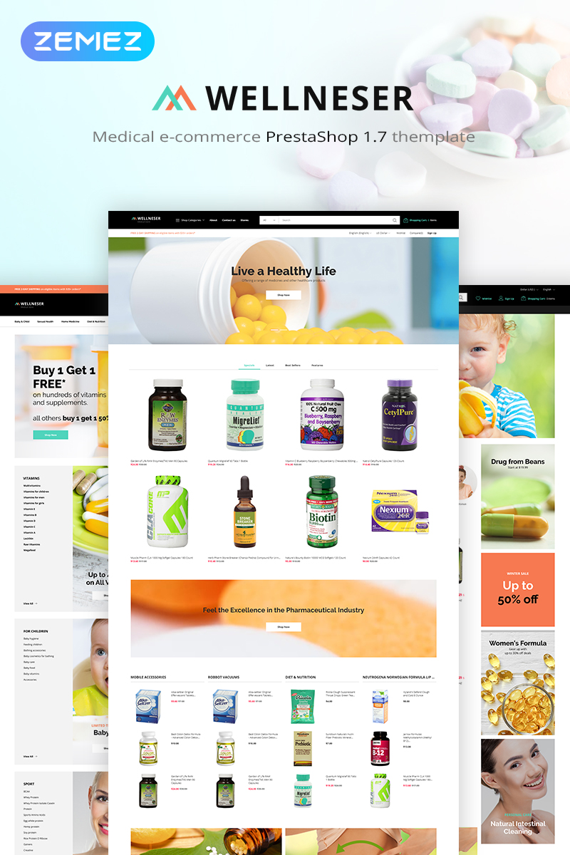 PrestaShop интернет-магазин - Wellneser - Medical Store Bootstrap Ecommerce Clean PrestaShop Theme, отлично подойдет для сайтов на тему Аптека.