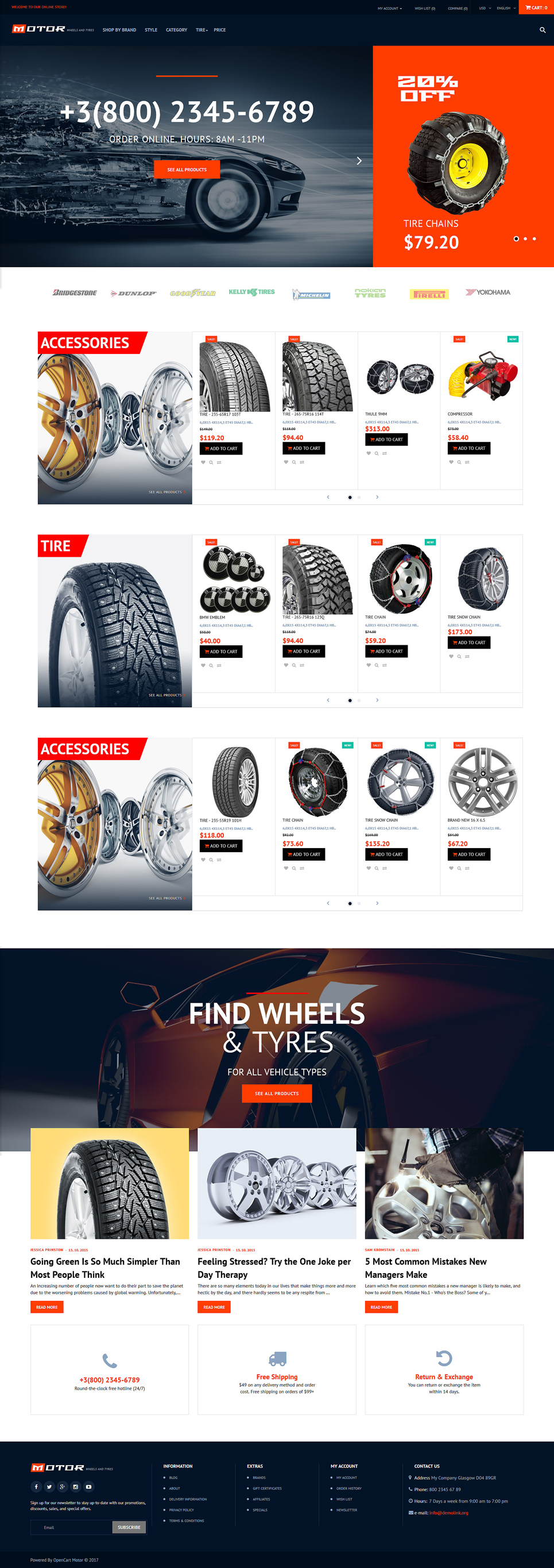 OpenCart шаблон интернет-магазина - Wheels & Tires - Wheels & Tires Responsive OpenCart Template, подходит для сайтов Автомонтаж.