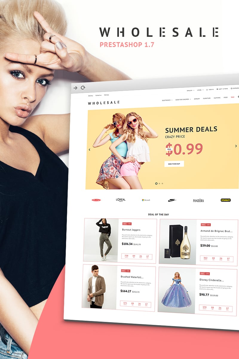 Wholesale Store - идеально подойдет для сайтов на тему Оптовый магазин. PrestaShop интернет-магазин для сайта - Wholesale Store Responsive PrestaShop Theme.