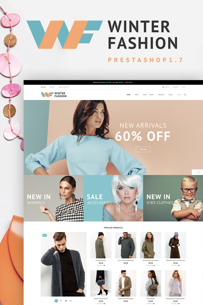 Winter Fashion - хорошо подходит для сайтов в сфере Модный магазин. PrestaShop шаблон для сайта интернет-магазина - Fashionable Winter Wear PrestaShop Theme.