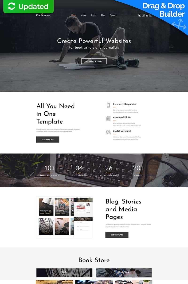 Writer/Author - идеально подойдет для сайтов в области Писатель/автор. Moto CMS 3 новый шаблон - Author Moto CMS 3 Template.