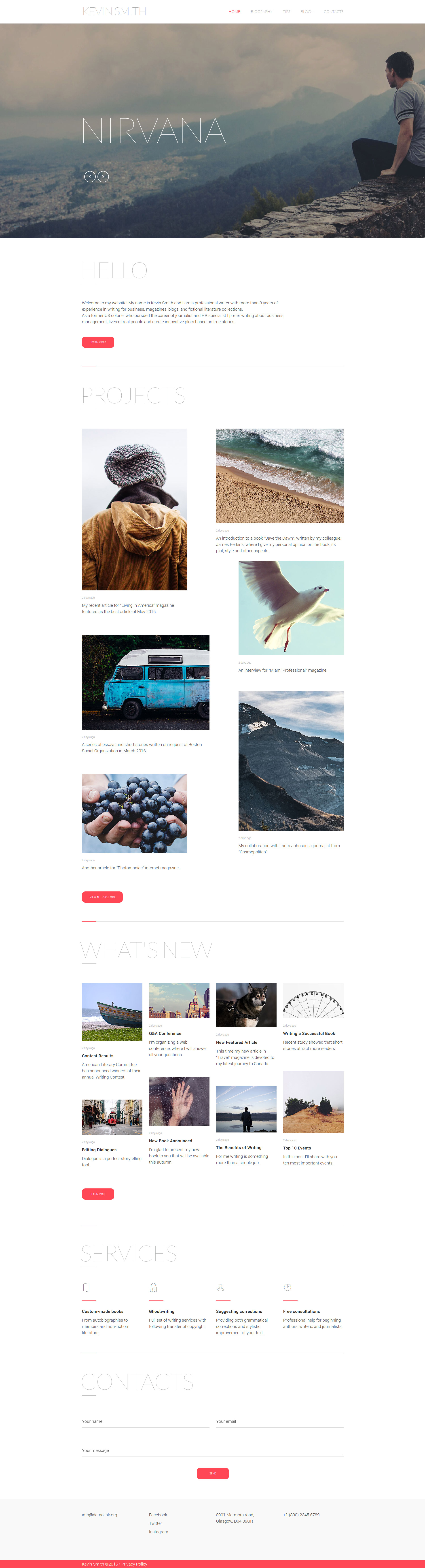 Writer/Author - хорошо подойдет для сайтов в области Писатель/автор. HTML5 функциональный шаблон - Author Responsive Website Template.