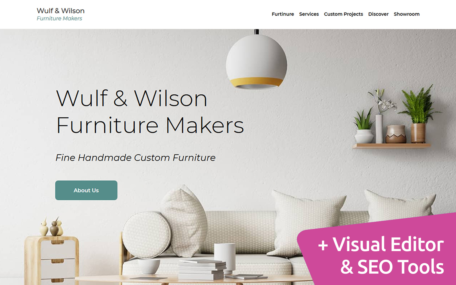 Moto CMS 3 современный шаблон - Wulf Wilson - Furniture Makers Moto CMS 3 Template, специально для сайтов Дизайн и интерьер.
