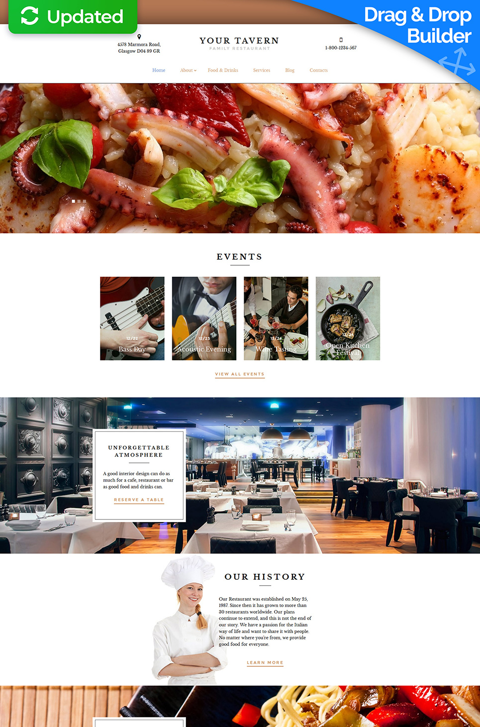 Moto CMS 3 функциональный шаблон - Your Tavern - Family Restaurant Moto CMS 3 Template, превосходно подходит для сайтов в категории Европейский ресторан.