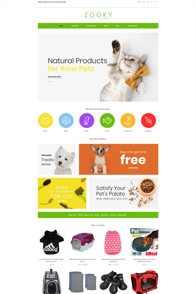Shopify шаблон для интернет-магазина - Zooky - commerce Clean Shopify Theme, специально для сайтов на тему Зоомагазин.