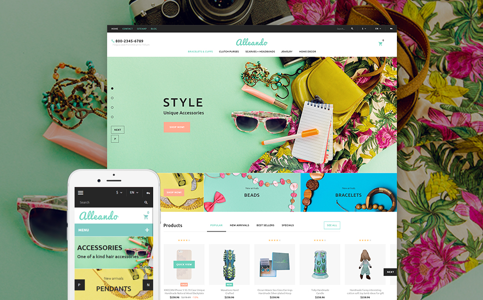 PrestaShop интернет-магазин - Alleando - Decor Accessories Responsive PrestaShop Theme, подходит для сайтов в категории Магазин подарков.
