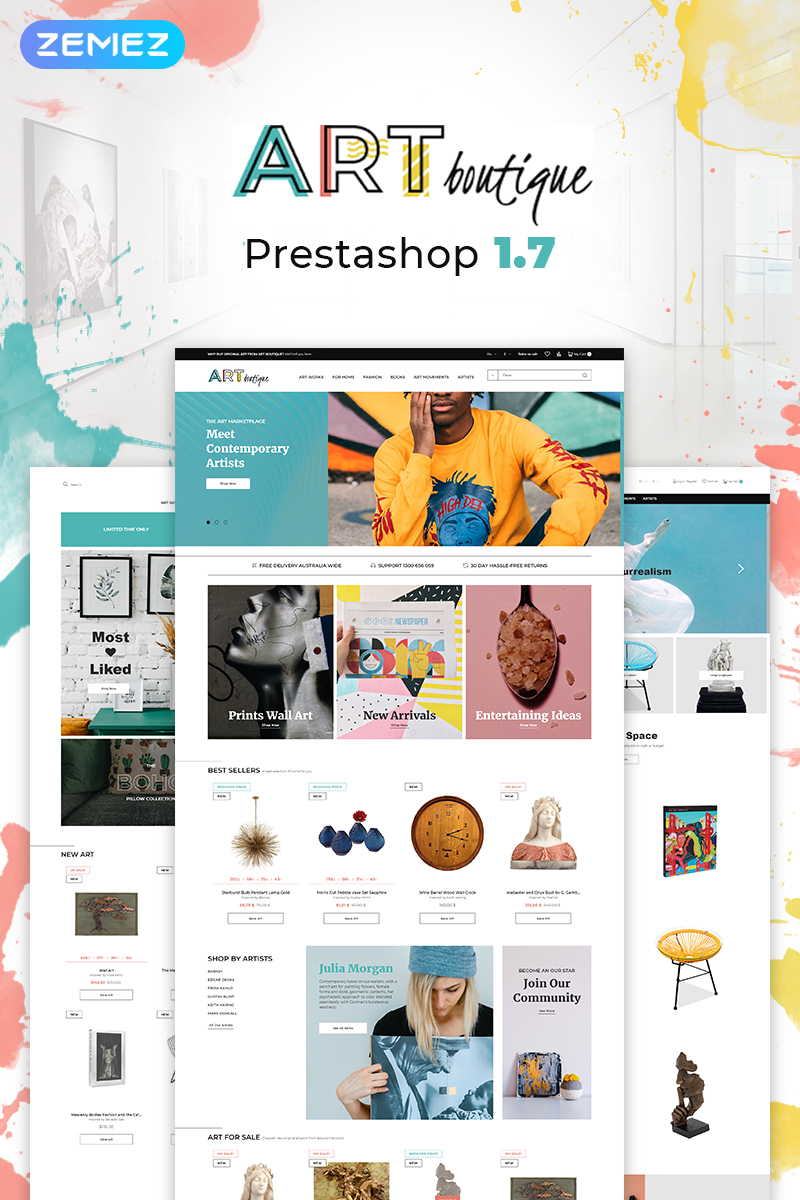 PrestaShop шаблон для интернет-магазина - ARTboutique - Art Gallery Modern Bootstrap Ecommerce PrestaShop Theme, хорошо подойдет для сайтов на тему Художественная галерея.